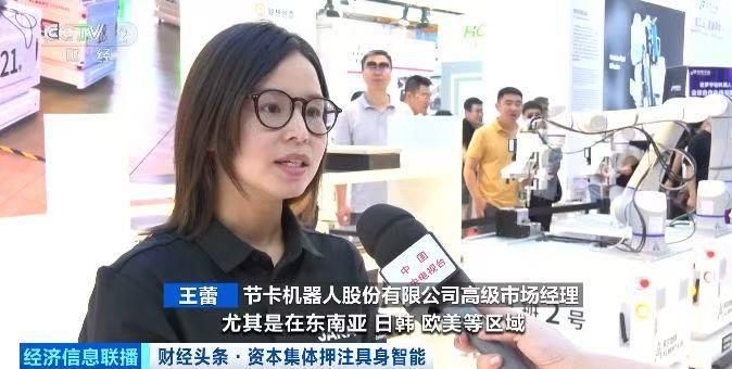 节卡机器人股份有限公司高级市场经理 王蕾:海外客户对智能化的产品和自动化设备的需求量是越来越高。尤其是在东南亚、日韩、欧美等区域,我们从2022年到2024年海外业务的复合增长率将近30%。7到12千克的机器人,它跟产线的工人负载力相当,目前是出货量最大的,在全球汽车产业链上发挥了极大的优势。